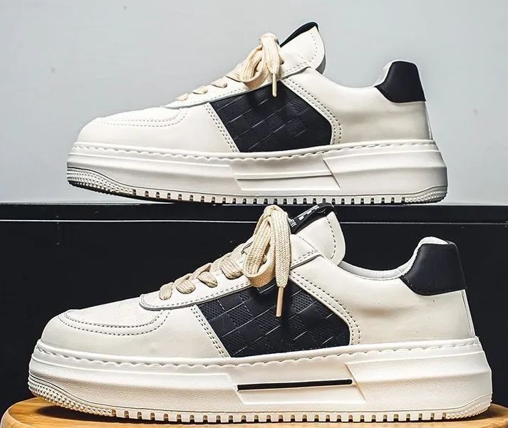 ✅ Black faux leather or canvas upper with bold skate aesthetic